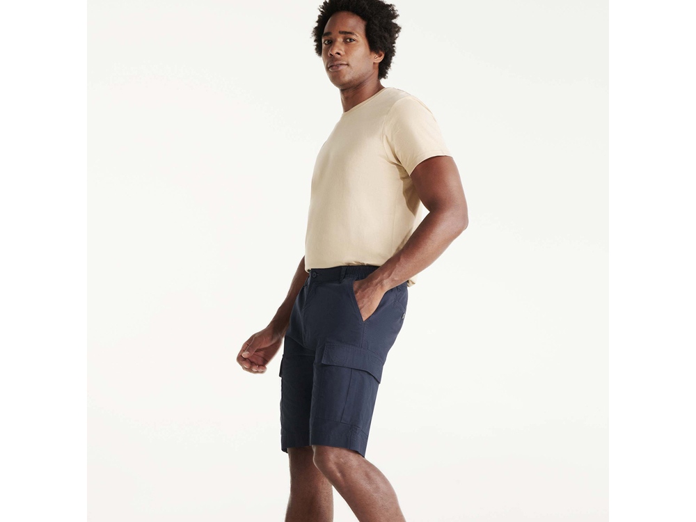 Шорты карго - регулируемый эластичный пояс по бокам - два передних кармана - два боковых кармана карго со складкой и клапаном с застежкой на липучку - два задних кармана с застегиваются на пуговицу