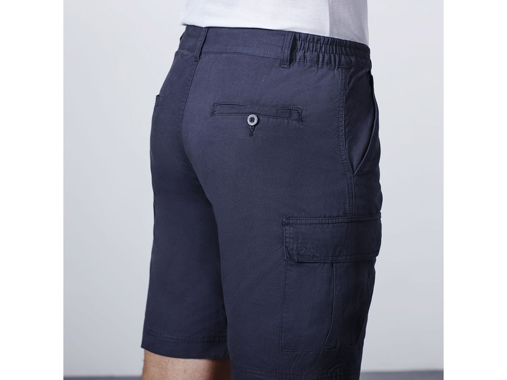 Шорты карго - регулируемый эластичный пояс по бокам - два передних кармана - два боковых кармана карго со складкой и клапаном с застежкой на липучку - два задних кармана с застегиваются на пуговицу