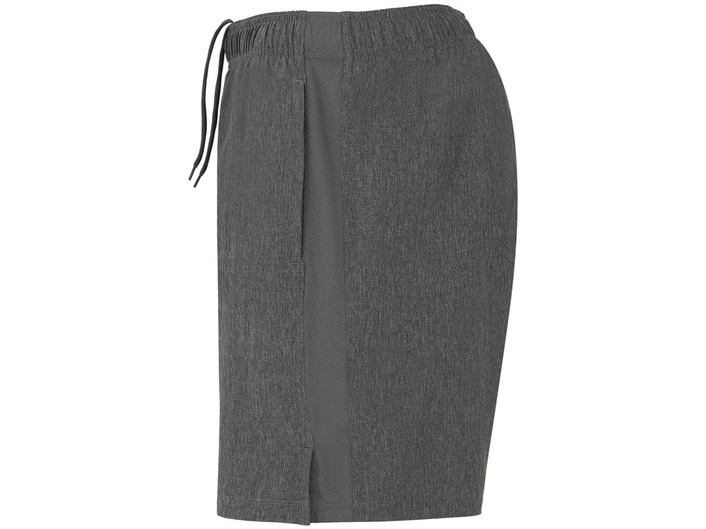Спортивные шорты из двух видов полотен с подкладкой - трусами. Эластичный пояс с контрастным внутренним шнурком. Лампасы по бокам из дышащей ткани. Два карманы по бокам. Асимметричные боковые разрезы внизу.