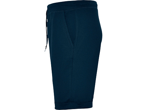 Спортивные шорты с широким эластичным поясом со шнуром для регулировки. Боковые карманы, задний карман и отвороты внизу с усиленными строчками.