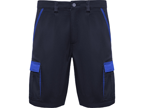 Шорты в двухцветной комбинации - Удобная и регулируемая ткань. - Контрастные петли для ремня, клапаны, складка и кант по краю кармана - Эластичный пояс сзади. - Два передних кармана. - Два задних кармана с клапаном и застежкой-липучкой. - Два боковых кармана со складкой и клапаном застегиваются на липучку.