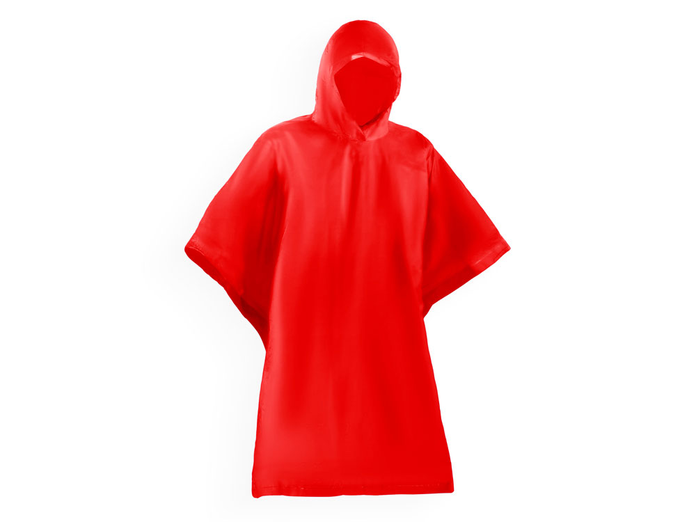 Складное водонепроницаемое пончо с капюшоном и отверстием для рук, с боковой застежкой на кнопки. Широкий диапазон цветов. Изготовлен из ПВХ.