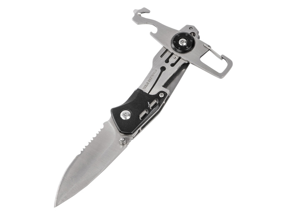 Складной нож Cutter с карабином, черный купить оптом и в розницу с нанесением логотипа в Нижнем Новгороде