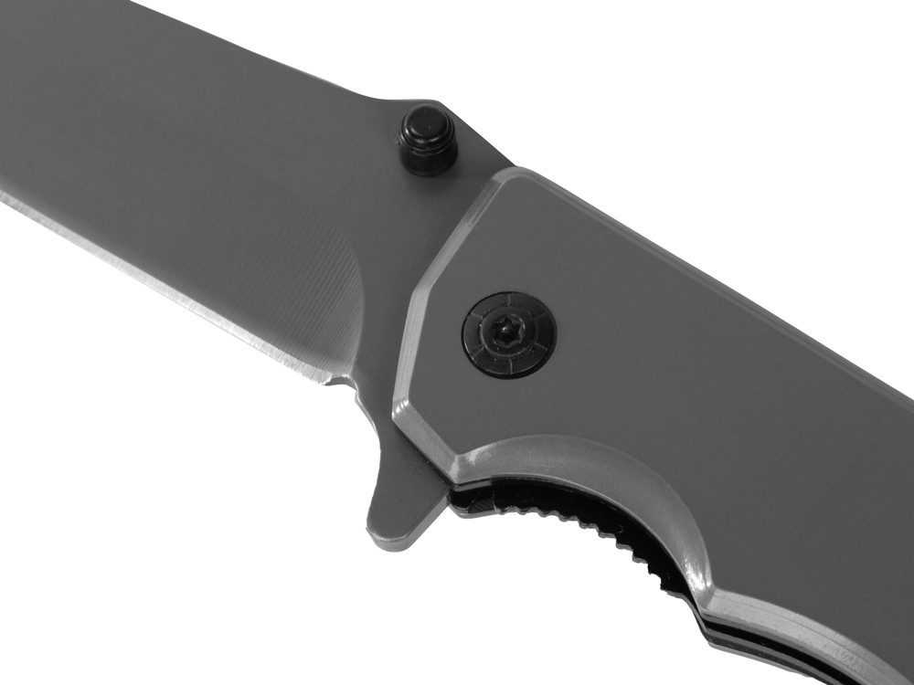 Складной нож с титановым покрытием от roq — почти готовый мерч, которому не хватает только вашего лого. Титановое покрытие корпуса и лезвия защищает от механических повреждений и увеличивает коррозионную стойкость изделия. Нож очень удобен для использования — выступ для быстрого открытия ножа указательным пальцем на ощупь, на лезвии с двух сторон — специальные выступы для открытия большим пальцем, а фиксатор Liner-lock не дает ножу случайно захлопнуться. На рукоятке имеется отверстие для ремешка. • 420 марка стали • титановое покрытие • удобен для использования — есть специальные выступы для быстрого раскрытия ножа на ощупь • безопасность обеспечена фиксатором, защищающим от захлопывания • отверстие для ремешка