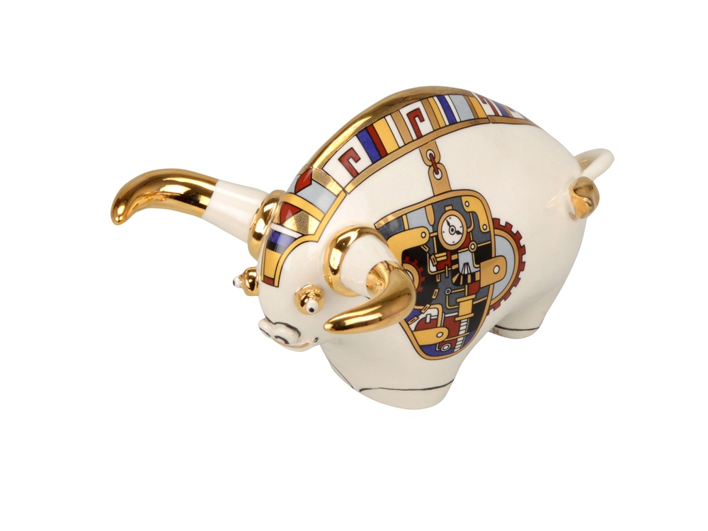 Вы знали, что образ быка в фэн-шуе трактуется как символ стабильности и процветания? Скульптура Бык - это великолепный символический подарок с уникальной ручной росписью, выполненный в стиле стимпанк. Представьте себе мир, где паровые машины и другие ретро-технологии не исчезли, а достигли высочайшего развития. Так и выглядит стимпанк! Неповторимые формы, применение ручной работы необычного геометрического орнамента в комбинации с высокой техникой мазка дают изделиям Арт–Модерн керамики оригинальный колорит и притягательность, а небольшой объем производства и индивидуальная роспись делают изделия исключительными. Внимание! Данное изделие относится к категории повышенной хрупкости. Для обеспечения его целостности и безопасной транспортировки настоятельно рекомендуется использование обрешетки. Обрешеточная упаковка является обязательной при доставке, и компания Oasis не несёт ответственности за повреждения, возникшие в результате ненадлежащей упаковки или транспортировки без обрешетки.