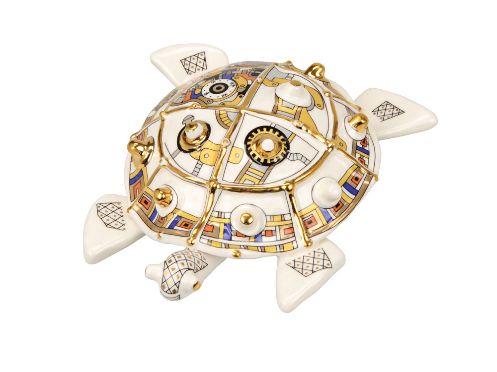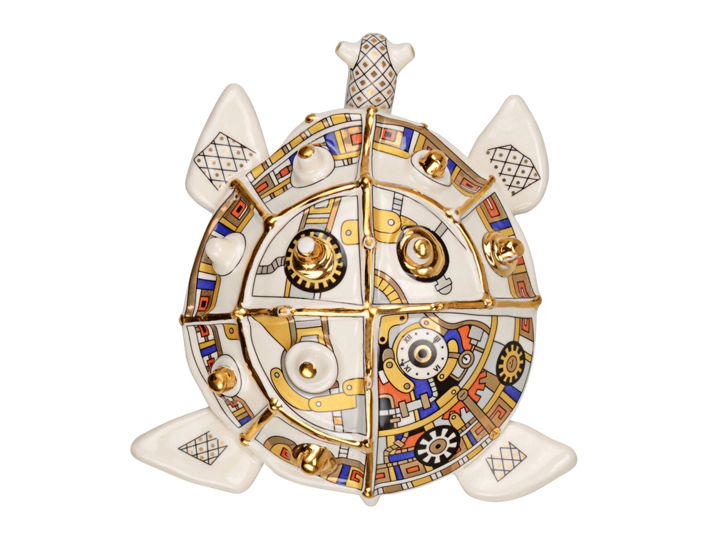 А вы знали, что черепаха - это символ достатка и благополучия? Скульптура Черепаха - это великолепный символический подарок с уникальной ручной росписью, выполненный в стиле стимпанк. Представьте себе мир, где паровые машины и другие ретро-технологии не исчезли, а достигли высочайшего развития. Так и выглядит стимпанк! Неповторимые формы, применение ручной работы необычного геометрического орнамента в комбинации с высокой техникой мазка дают изделиям Арт–Модерн керамики оригинальный колорит и притягательность, а небольшой объем производства и индивидуальная роспись делают изделия исключительными. Внимание! Данное изделие относится к категории повышенной хрупкости. Для обеспечения его целостности и безопасной транспортировки настоятельно рекомендуется использование обрешетки. Обрешеточная упаковка является обязательной при доставке, и компания Oasis не несёт ответственности за повреждения, возникшие в результате ненадлежащей упаковки или транспортировки без обрешетки.
