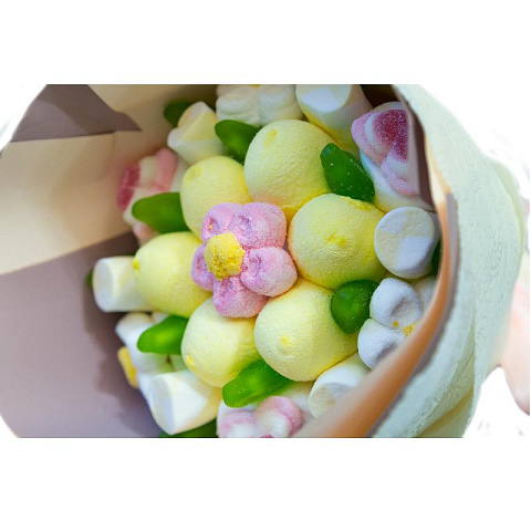 Милый и почти наивный сладкий букет Первое свидание изготовлен из вкуснейшего зефира и желе, а потому понравится даже той, что тщательно следит за фигурой. Может, именно его не хватает в плане вашего первого свидания?