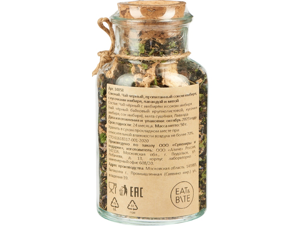 | Состав | чай чёрный байховый крупнолистовой, кусочки имбиря, сок имбиря, мята сушёная, Лаванда |