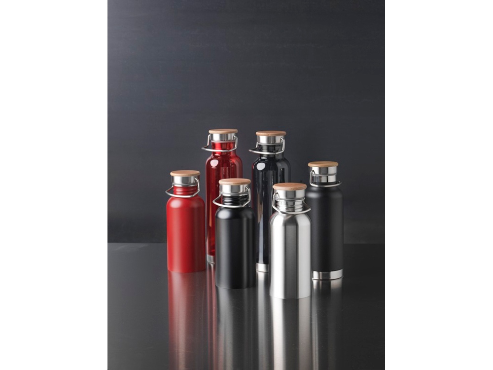 Бутылка из нержавеющей стали с одинарными стенками и съемной крышкой. На крышке есть бамбуковый колпачок и ручка для удобной переноски. Объем 550 мл. Представлена в подарочной коробке Avenue.