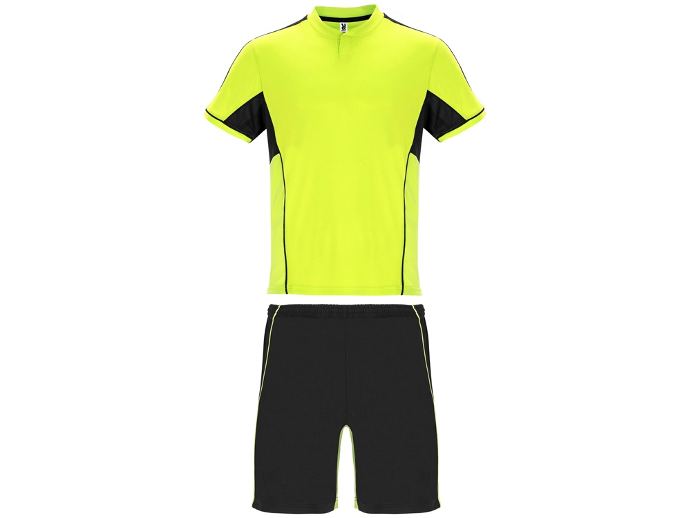 Спортивный костюм с сочетанием трех полотен. - Футболка с воротником-стойкой и застежкой на кнопку. - Рукава с внутренней стороны из дышащей ткани. - Боковые вставки и верхняя полоса рукавов из ткани CONTROL DRY. - Шорты с поясом со шнуром для регулировки по талии. - Внутренняя часть штанин и контрастная окантовка из ткани CONTROL DRY.