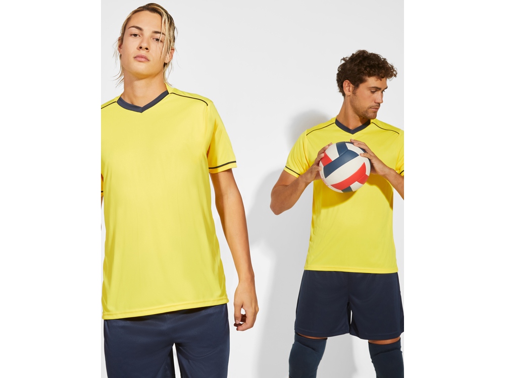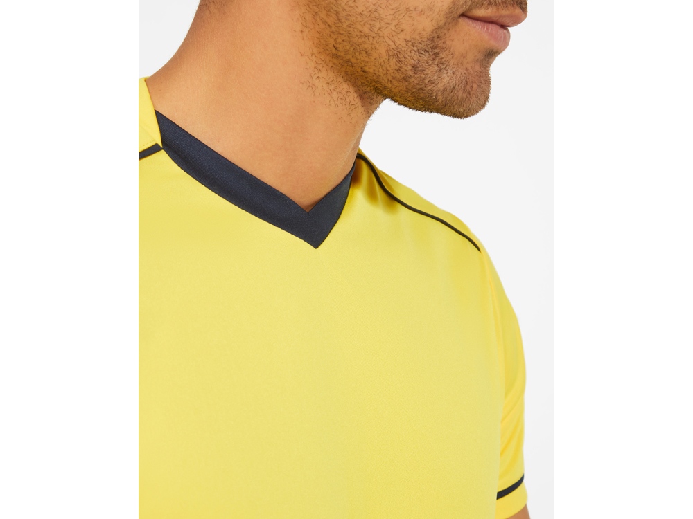 Спортивный костюм с футболкой и шортами. - Футболка с двойной стильной горловиной с V-образным вырезом и усиленными закрытыми внутренними швами. - Отделка контрастной окантовкой на плечах. - Короткие рукава с контрастным кантом - Шорты с эластичным поясом с внутренним шнурком для регулировки и усиленной строчкой.