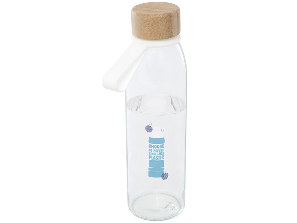 Одностенная стеклянная бутылка для воды с завинчивающейся бамбуковой крышкой, произведенной из более устойчивых и социально ответственных источников. В комплект входит удобный силиконовый ремешок для удобной переноски. Поставляется в подарочной коробке из переработанного картона. Объем: 500 мл. Стекло, FSC certified bamboo. упаковка FSC Mix Credit P5.1 CU-COC-877277. FSC 100% N5 CU-COC-877277.