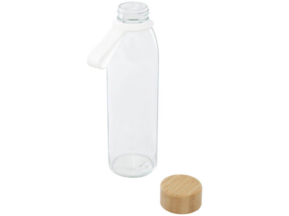 Стеклянная бутылка для воды Porto объемом 500 мл с силиконовой ручкой и бамбуковой крышкой - Прозрачный купить оптом и в розницу с нанесением логотипа в Нижнем Новгороде