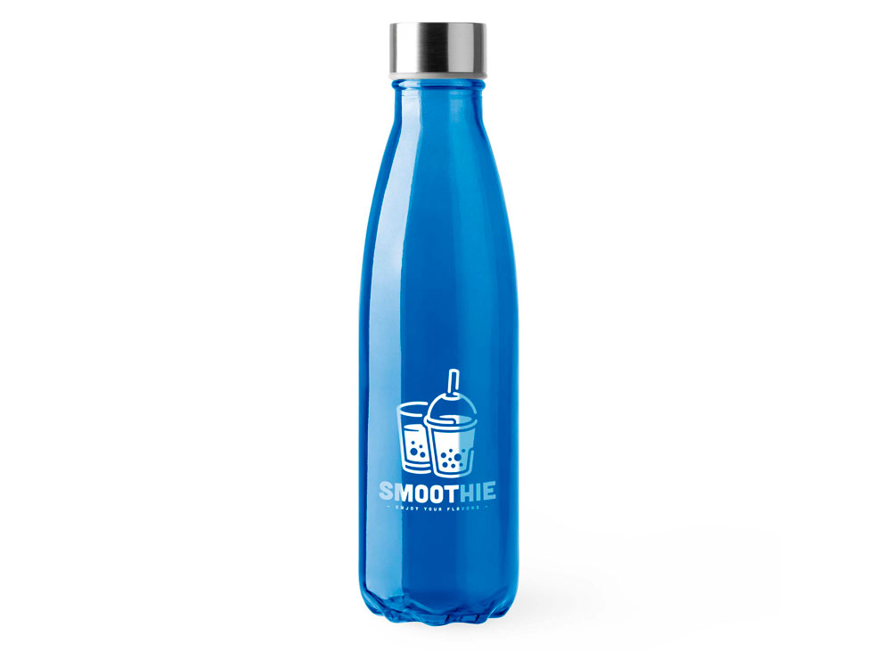 Стеклянная бутылка с полупрозрачным цветным корпусом. Крышка из нержавеющей стали. Объем 650 мл.