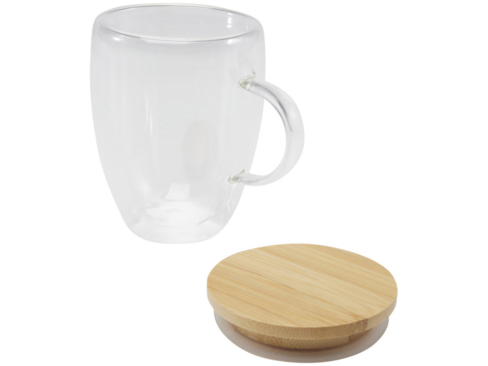 Стеклянная кружка Leona объёмом 350 мл с двойными стенками и стильной бамбуковой крышкой. Она дольше сохраняет температуру напитка, помогает избежать проливов и бережно удерживает его аромат. Идеальный выбор для уютного чаепития или кофе-паузы. Не рекомендуется использовать в посудомоечной машине.