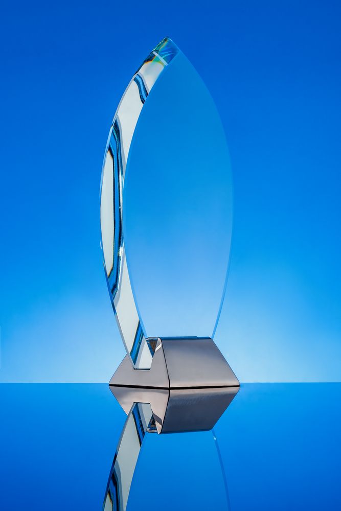 Конструкция награды разъемная: стеклянную часть стелы при необходимости можно вынуть из  основания.