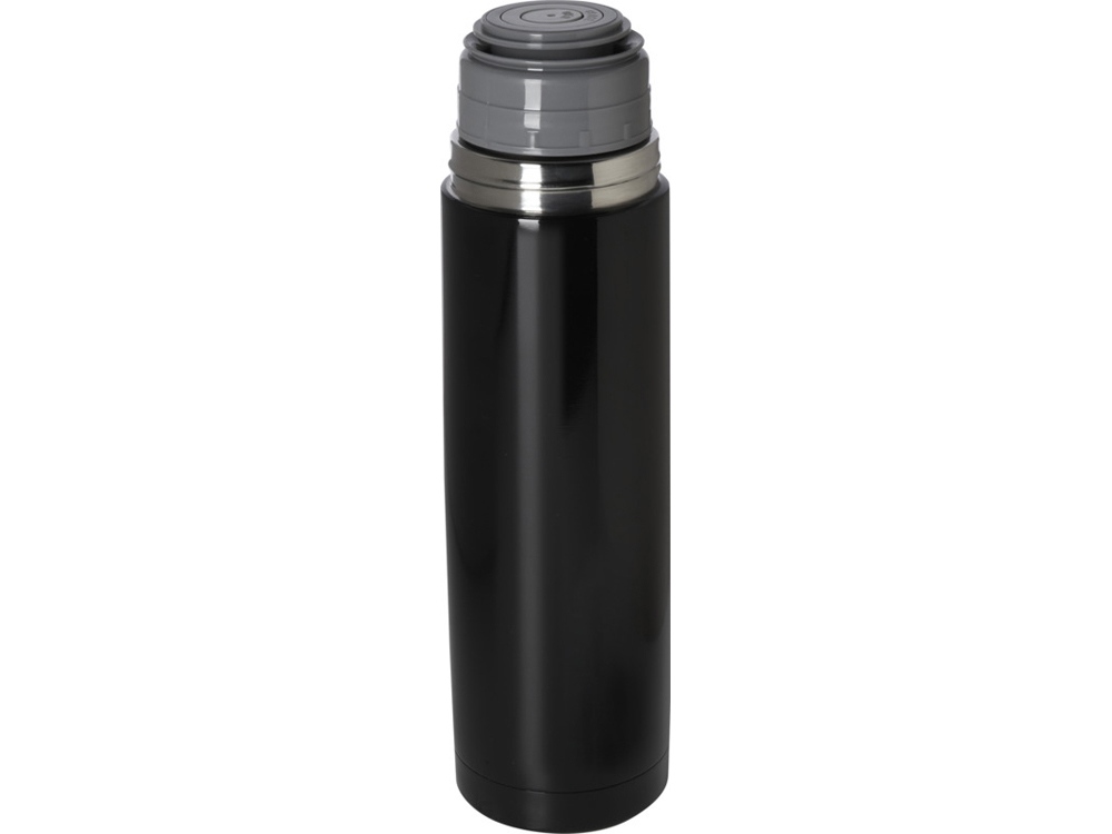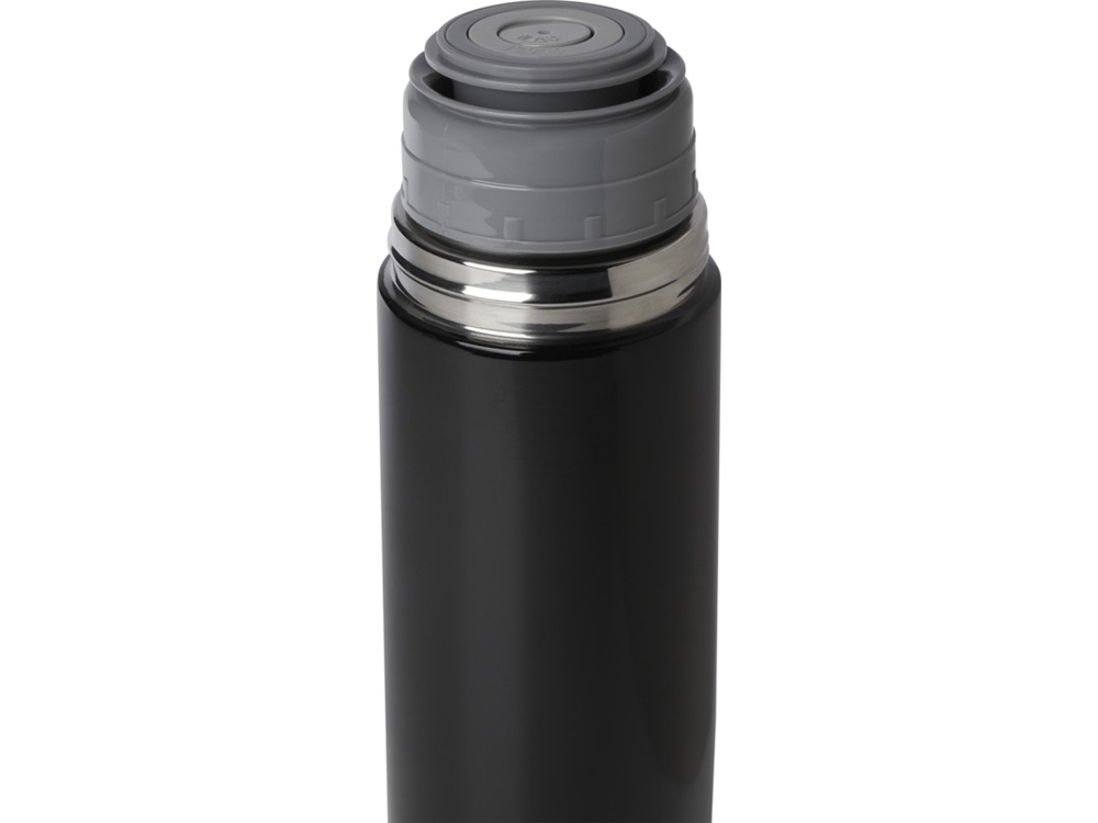 Изолированная колба с двойными стенками и крышкой, сертифицированная RCS. Кнопочный носик, управляемый одной рукой, который автоматически закрывается при привинчивании крышки-чашки к бутылке. Объем 750 мл. Recycled stainless steel.