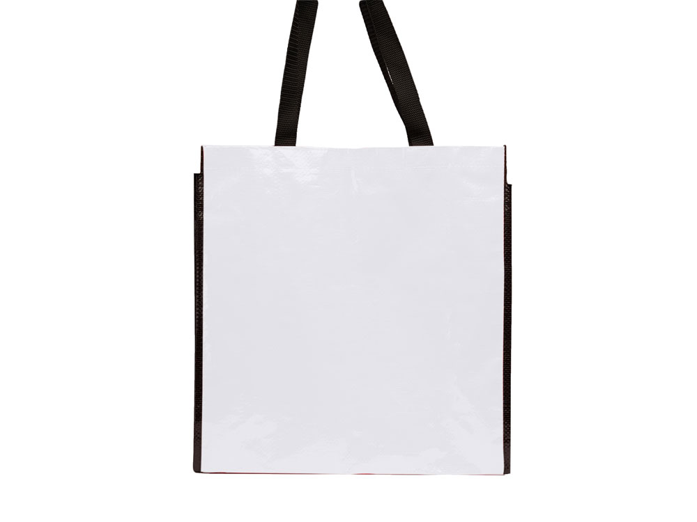 Сумка многоразового использования с глянцевой ламинированной отделкой. Прочный материал с ручками из усиленного нейлона и соответствующей черной окантовкой.