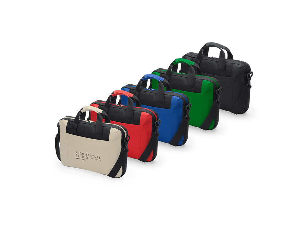 Сумка для ноутбука из мягкого полиэстера 600D с внешним карманом. Ручки для переноски и регулируемый плечевой ремень с карабином.