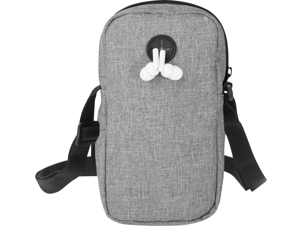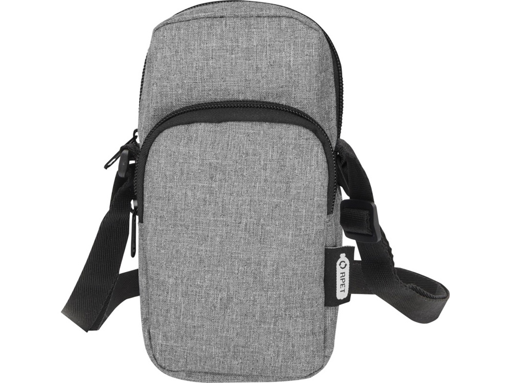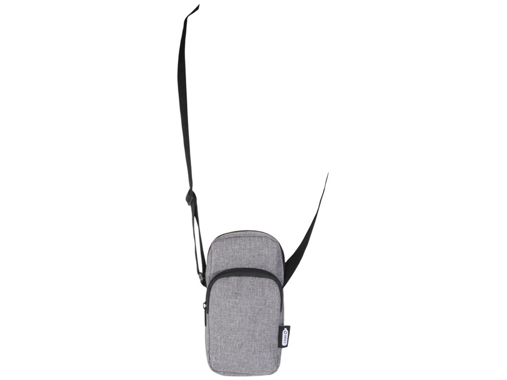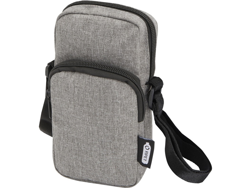 Сумочка для телефона Ross, изготовлена из переработанных материалов, сертифицированных согласно, GRS сохранит ваш телефон в безопасности и всегда заряженным с помощью входящего в комплект портативного зарядного устройства в отделении на молнии. Спереди расположен карман на молнии для других мелких аксессуаров. Ремень 140 см регулируется по длине, что делает сумочку удобным аксессуаром для гаджетов во время поездок или передвижений по городу. GRS certified recycled polyester.