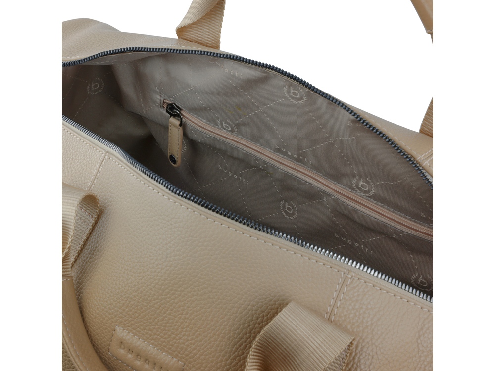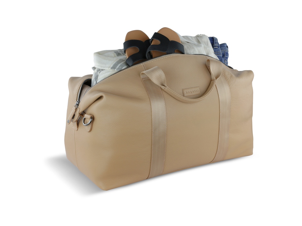 ДОРОЖНАЯ СУМКА ELSA Готовы к поездке в выходные? Мы раскрасим вашу ленту в соцсетях невероятной коллекцией ELSA. Коллекция ELSA предлагает широкий ассортимент аксессуаров и сумок разных форм и размеров, от элегантных кошельков и изящных наплечных сумочек для выхода в свет до вместительных шопперов и дорожных сумок для путешествий. Все модели серии изготовлены из высококачественной мягкой воловьей кожи и представлены в классическом черном, белом и бежевом цветах. Элегантное тиснение логотипа Bugatti придает очарование каждой модели. Коллекция выделяется продуманной функциональной организацией внутреннего пространства и защитой от радиочастотной идентификации RFID. Кошельки и ключницы оснащены специальным защитным слоем из фольги, который предотвращает незаконное сканирование вашей личной информации и препятствует списанию денежных средств с банковских карт. Какой бы аксессуар или сумку вы бы ни предпочли, будьте уверены, что с коллекцией ELSA вы точно окажетесь в центре внимания. СВОЙСТВА Функциональная организация: основное отделение на молнии с карманом на молнии, 2 открытых кармана, задний карман на молнии, 2 ручки, съемный регулируемый плечевой ремень (до 140 см). Материал: воловья кожа/полиэстер Размер: 47 х 22 х 24/30 см Вес: 1,2 кг