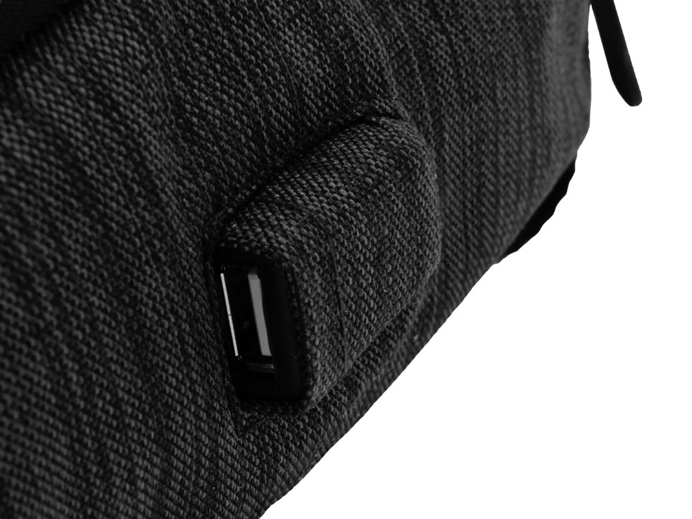 Удобная и легкая сумка на одно плечо незаменима для переноски всего необходимого. - карман на молнии на лямке для карт, - фиксация лямки для ношения слева или справа, - регулируемая по длине лямка 145 см, - сетчатая дышащая спинка, - USB порт, - ремешок из PU для дополнительного удобства, - в большом отделении: карман для планшета, органайзер, наружный карман с сетчатым карманом внутри.