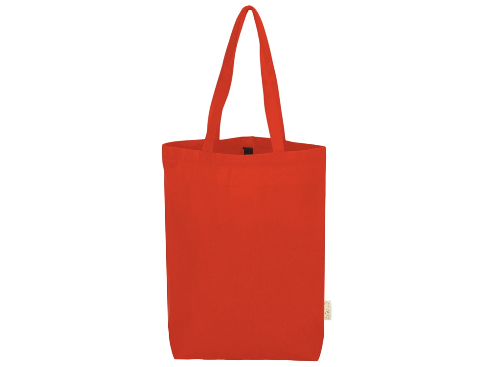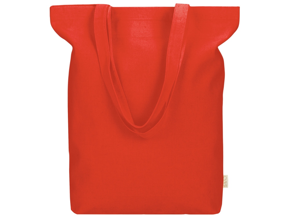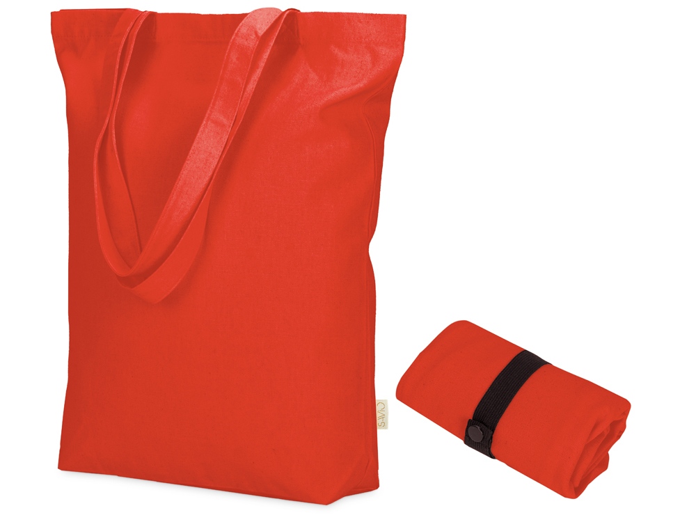 Удобная сумка-шоппер из переработанного хлопка. Можно хранить в сложенном виде и фиксировать с помощью эластичной ленты, застегивающейся на кнопку.