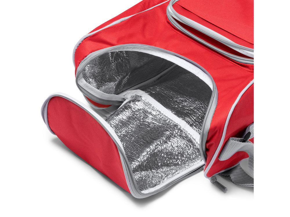 Универсальная сумка-холодильник из полиэстера 600D. Изотермическое основное отделение и практичный передний карман идеально подходят для хранения продуктов или напитков и поддержания их идеальной температуры. Включает регулируемый транспортировочный ремень.