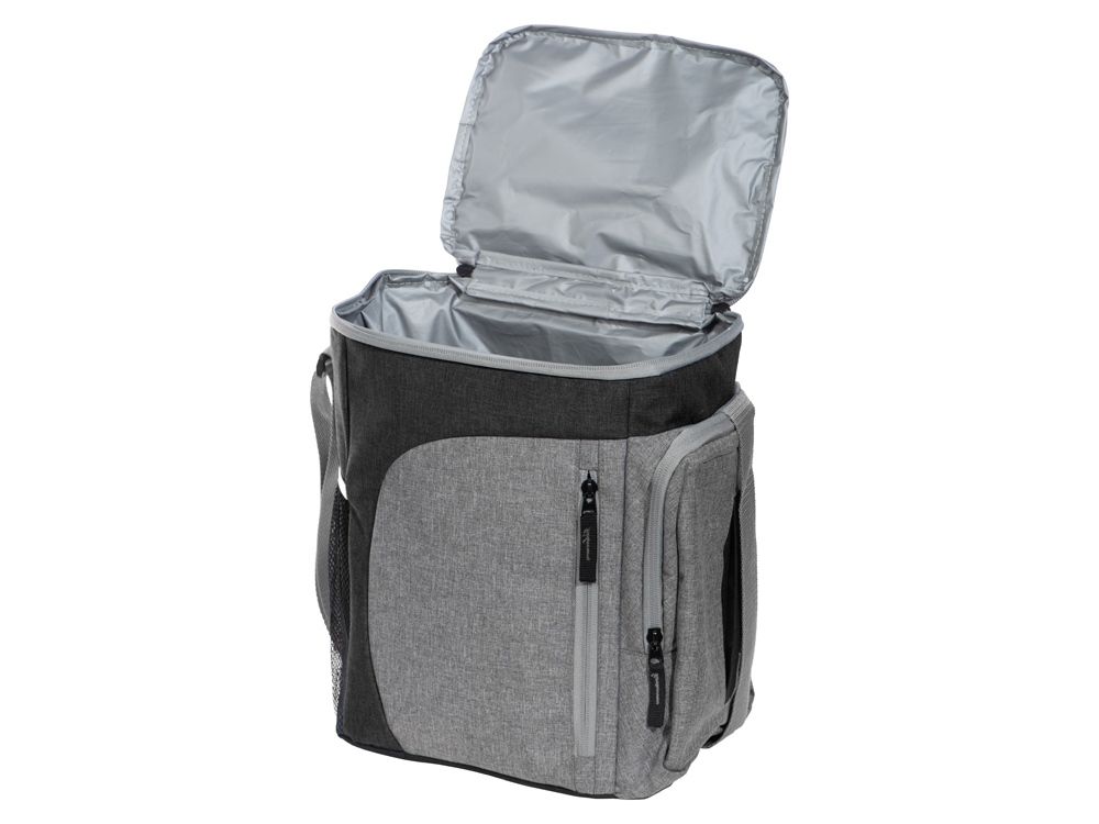 Удобная изотермическая сумка, в которую вы легко можете поместить продукты, несколько ланчбоксов и даже 12-15 банок по 0,33 л. Снаружи сетчатый карман, фронтальный карман для мелочей на молнии, отделение для хранения влажных салфеток и ручка для переноски. Лямка на плечо регулируется по длине. Время поддержания температуры 3-5 ч в зависимости от окружающей температуры.