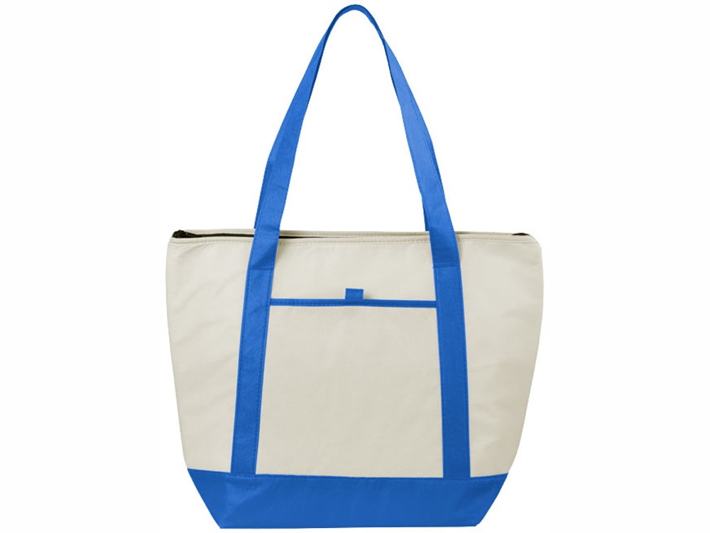 Нетканая сумка-холодильник Lighthouse. Основное отделение на молнии с двойными ручками. Высота ручек 23,5 см. Открытый передний карман с держателем для ручки. Аксессуары не включены. Нетканый полипропилен 80 г/м².