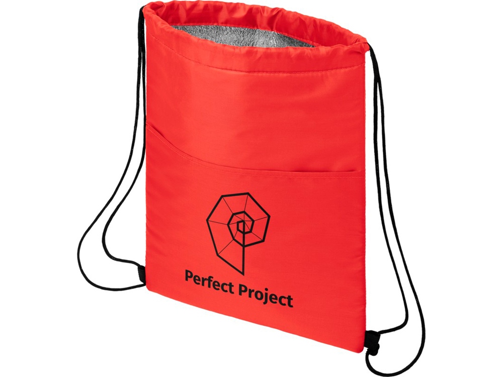 Сумка-холодильник затягивается на шнурок черного цвета. С открытым передним карманом. Вмещает 12 банок. Прочность до 5 кг.
