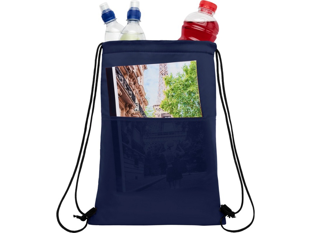 Сумка-холодильник затягивается на шнурок черного цвета. С открытым передним карманом. Вмещает 12 банок. Прочность до 5 кг.