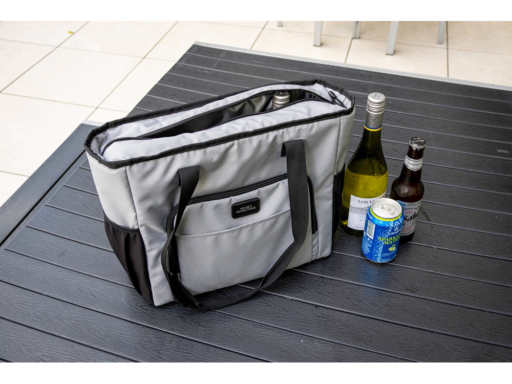 Удобная сумка-холодильник с ручками на плечо будет отличным корпоративным подарком. Универсальный размер - даже винные бутылки легко помещаются вертикально. Наружный карман на молнии можно использовать для приборов и салфеток. 2 боковых расширяющихся кармана из эластичной сетки. В комплекте открывалка для бутылок. Водостойкий материал. Комплектуется 2мя съемными шильдами под нанесение вашего логотипа - металлическим и из эко кожи.