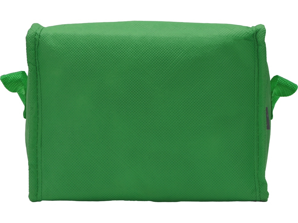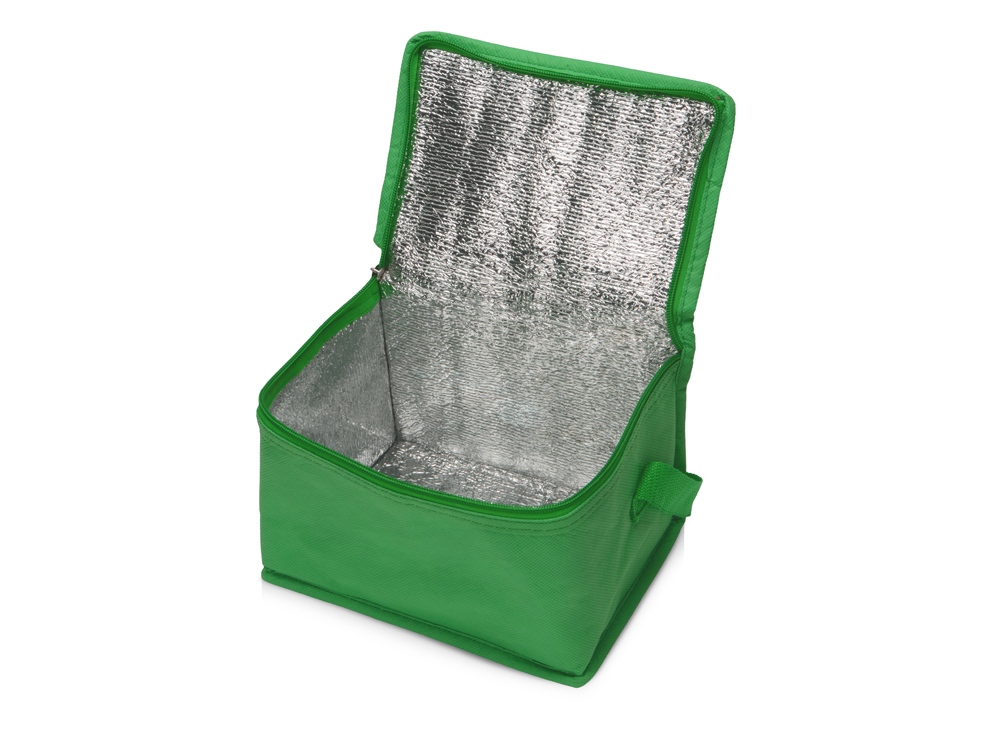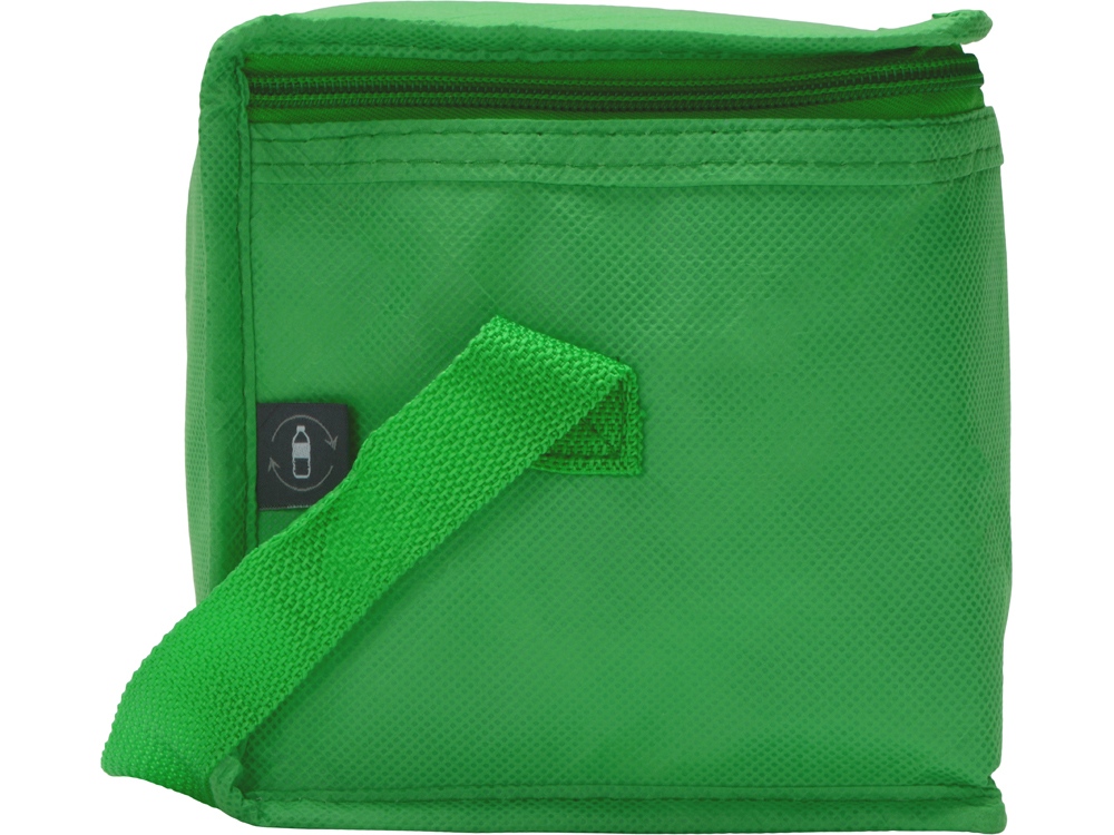 Сумка-холодильник из переработанного пластика. Вмещает 6 банок по 0.33 л. Закрывается на молнию. Удобная ручка для переноски.