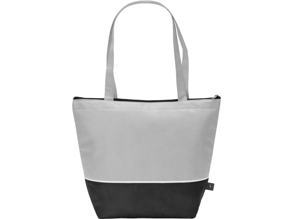 Вместительная сумка-холодильник из переработанного пластика. Удобные длинные ручки для ношения на плече. Застегивается на молнию.