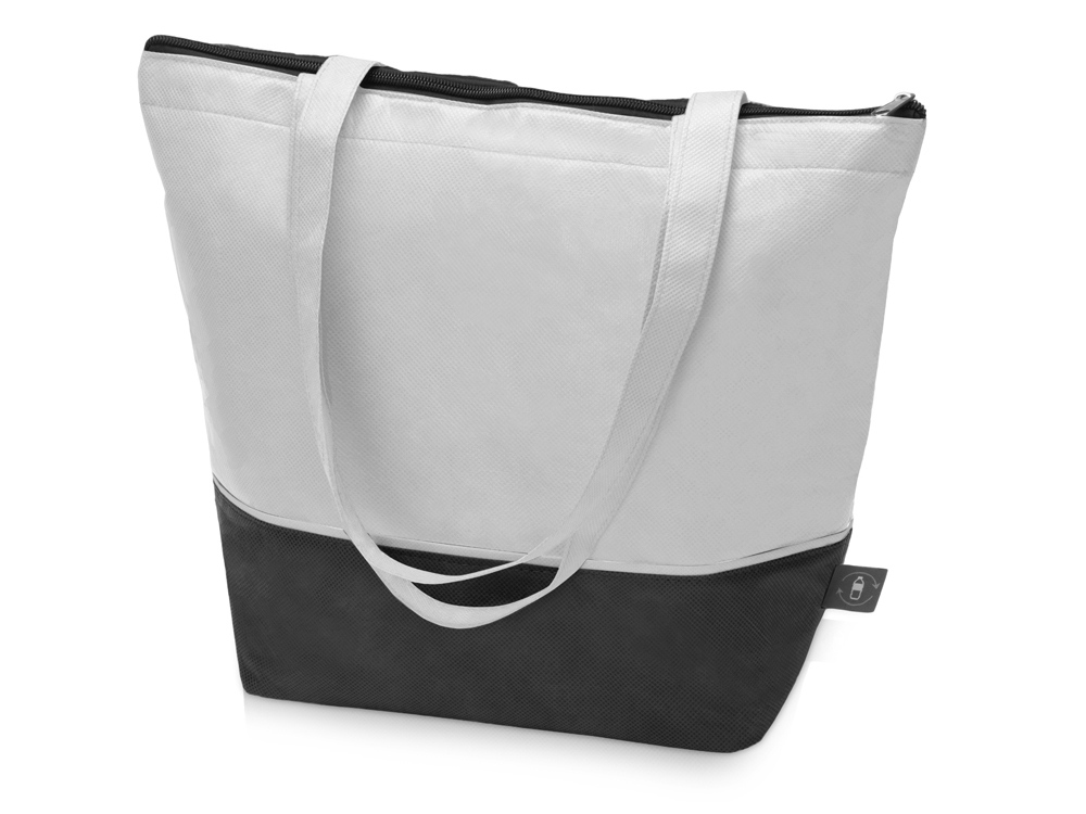 Вместительная сумка-холодильник из переработанного пластика. Удобные длинные ручки для ношения на плече. Застегивается на молнию.