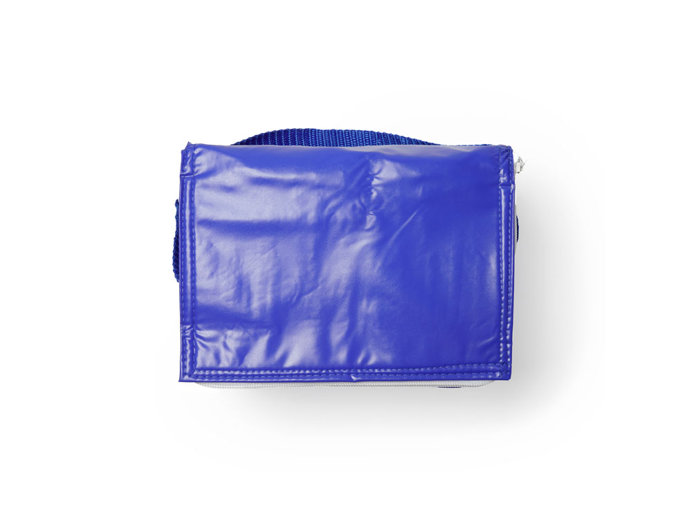 Сумка-холодильник с подкладкой из изотермического алюминия на 6 банок из ПВХ. Ручка для переноски и застежка-молния.