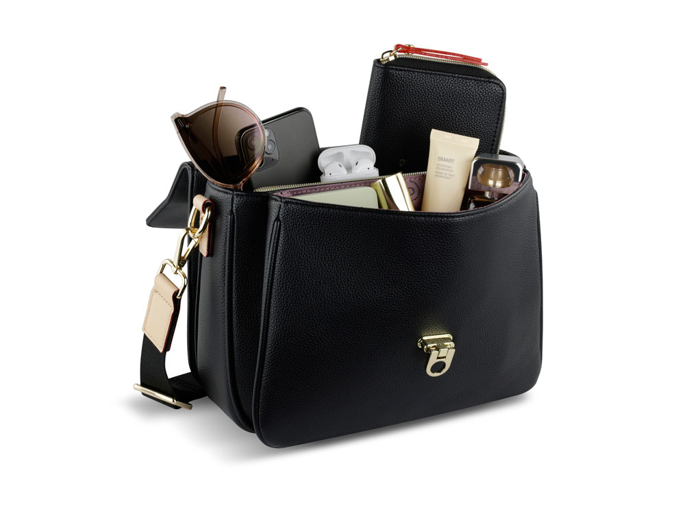 СУМКА ELLA Стильные сумки и кошельки из нашей коллекции ELLA украсят любой ваш образ. В изделиях этой серии элегантная эстетика гармонично сочетается с современным городским дизайном. Красивые изогнутые ручки, двухцветные плечевые ремни и изысканная фурнитура подчёркивают уникальный стиль коллекции. Модели произведены из прочного износостойкого полиуретана, что гарантирует их чрезвычайно долгий срок службы. СВОЙСТВА Внутренняя организация: основное отделение с 2 отсеками на молнии, карманом, 2 боковых кармана Внешняя организация: застёжка-клапан, задний карман на молнии, съёмный регулируемый ремень (до 130 см) Размер: 29 x 10 x 22 см Вес: 0,65 кг Материал: полиуретан