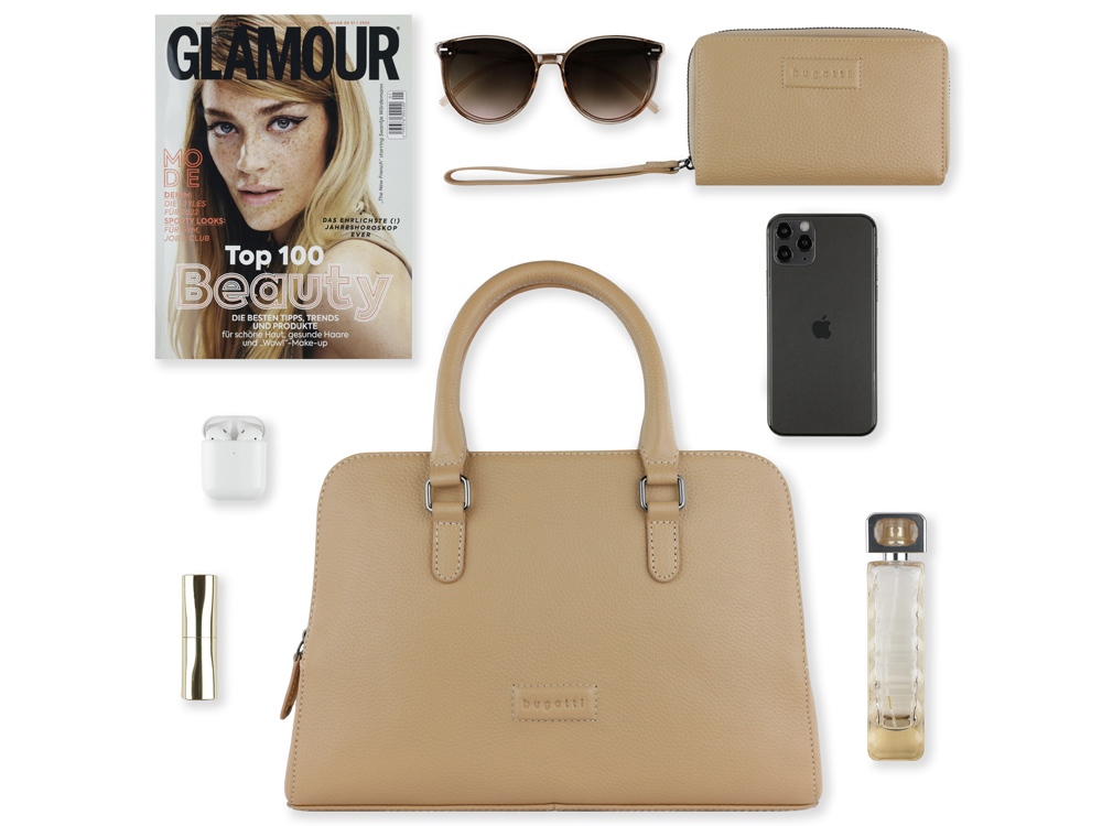 Сумка женская BUGATTI Elsa, песочного цвета, воловья кожа/полиэстер, 32х13х22 см