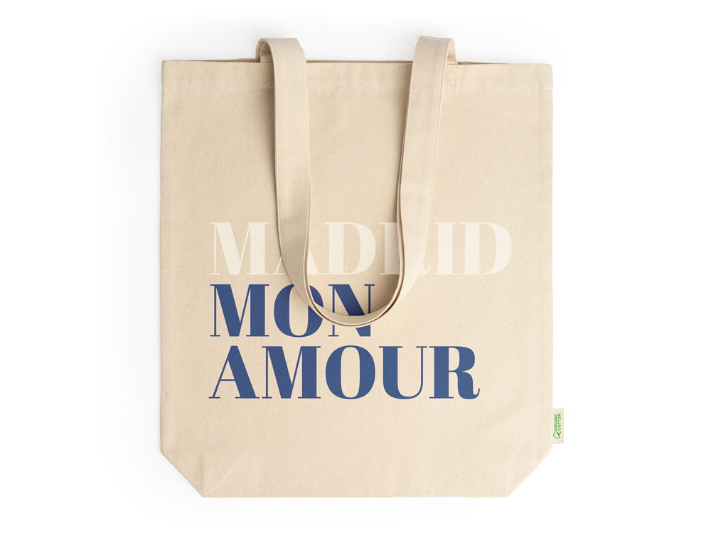Сумка из 100% органического хлопка с донной вставкой и практичными ручками длиной 70 см. 280 г/м².