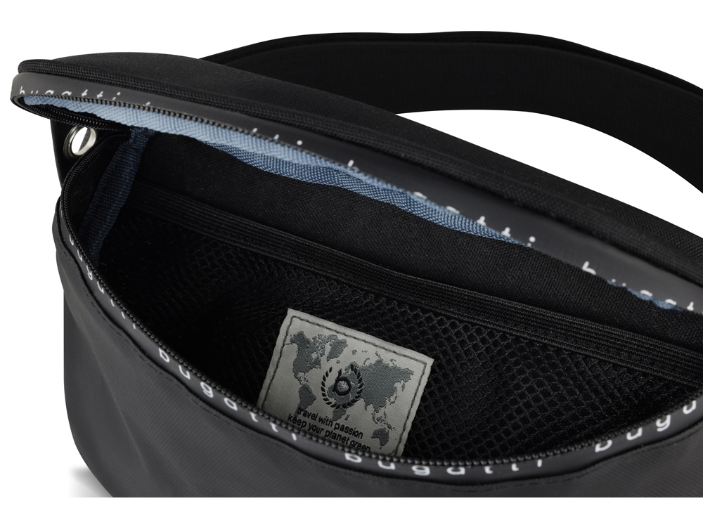 СУМКА НА ПОЯС BLANC DELIGHT Синергия дизайна и функциональности. Представляем нашу коллекцию универсальных, чрезвычайно стильных и суперлегких сумок и рюкзаков BLANC DELIGHT в облегченной версии. В качестве основного материала используется 100% переработанный нейлон плотностью 600D и облегченный тарпаулин с водоотталкивающими свойствами. Скрытые молнии с логотипом Bugatti не только защищают от проникновения влаги, но и дополняют стильный дизайн коллекции. С сумками BLANC DELIGHT будьте готовы быть в центре внимания! СВОЙСТВА Функциональная организация: основное отделение на молнии с сетчатым карманом, регулируемый поясной ремень (до 120 см). Материал: нейлон RPET600D/облегченный тарпаулин/полиэстер Размер: 24 х 11 х 12,5 см Вес: 0,11 кг Объем: 2 л