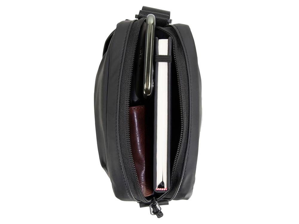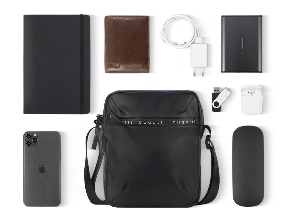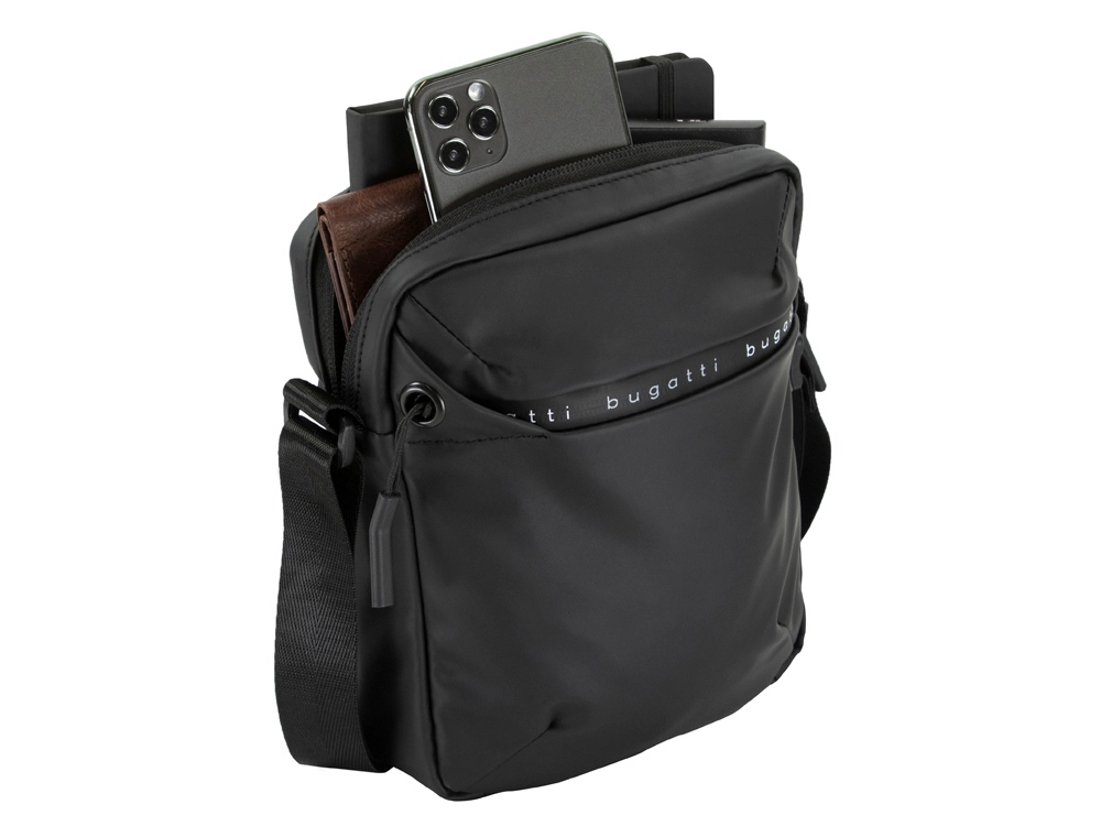 Сумка наплечная BUGATTI Blanc, чёрная, тарпаулин/полиэстер, 17х4,5х21 см купить оптом и в розницу с нанесением логотипа в Нижнем Новгороде