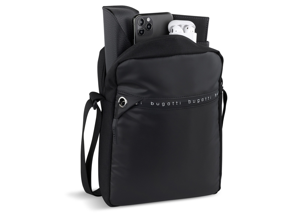 Сумка наплечная BUGATTI Blanc Delight, чёрная, нейлон RPET600D/тарпаулин/полиэстер, 20х6х26 см, 2 л купить оптом и в розницу с нанесением логотипа в Нижнем Новгороде