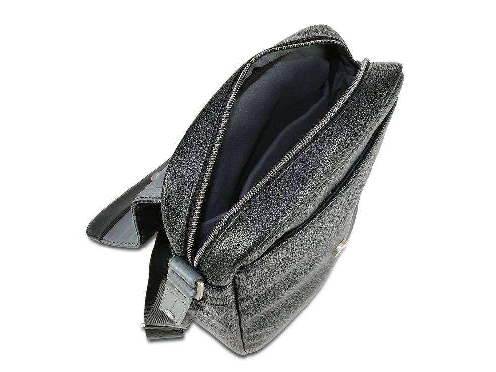 НАПЛЕЧНАЯ СУМКА MOTO D Наша линейка рюкзаков и сумок Moto D, произведённых из высококачественного полиуретана, выполнена в привлекательном винтажном стиле. Чёрный и синий цвета гармонично сочетаются с чёрными тканевыми ремнями и серой полиуретановой отделкой. Аутентичная нашивка Bugatti эффектно украшает переднюю часть изделий, в то время как двойные швы подчёркивают спортивный характер коллекции. В серию входят удобные элегантные наплечные сумки и стильные вместительные рюкзаки. СВОЙСТВА Внутренняя организация: основное отделение на молнии с карманом на молнии, мягким отделением для планшета 10’’ и карманом-органайзером Внешняя организация: переднее отделение, задний карман на молнии, регулируемый плечевой ремень (до 150 см) Размер: 25 x 8 x 30 см Объём: 4 л Вес: 0,56 кг Материал: полиуретан