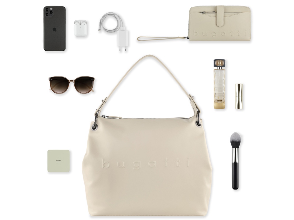 Сумка наплечная женская BUGATTI Daphne, бежевый цвет, воловья кожа/полиэстер, 34х13х30 см