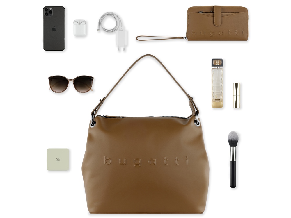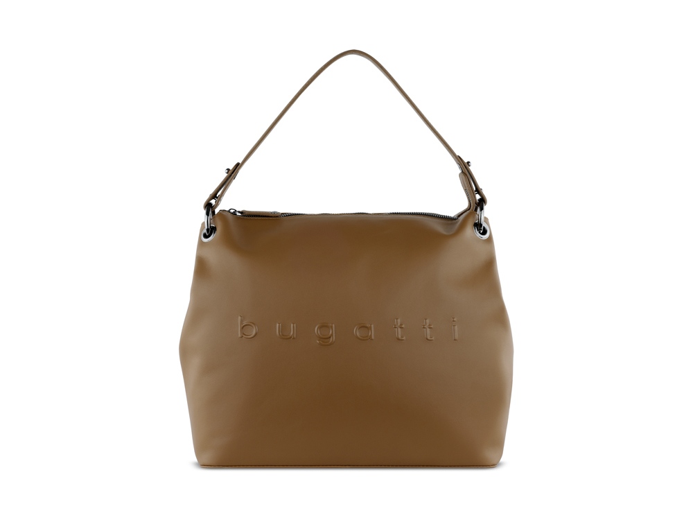 НАПЛЕЧНАЯ СУМКА DAPHNE Лаконичный дизайн коллекции DAPHNE станет идеальным украшением женского образа. Все модели серии изготовлены из высококачественной гладкой воловьей кожи и представлены в черном, коньячном и бежевом цветах. Благодаря классической цветовой палитре все изделия можно комбинировать друг с другом для идеального сочетания. Акцентное тиснение логотипа bugatti выполнено вручную с максимальной филигранностью. Оригинальные плетеные ручки и металлические детали придают очарование коллекции, создают элегантный и одновременно спортивный образ. СВОЙСТВА Внутренняя организация: основное отделение на молнии с 2 открытыми карманами, отделение на молнии, карман на молнии. Внешняя организация: заднее отделение на молнии, съемная регулируемая ручка (от 46 до 50 см). Размер (длина, глубина и высота): 34 х 13 х 30 см Вес: 0,61 кг