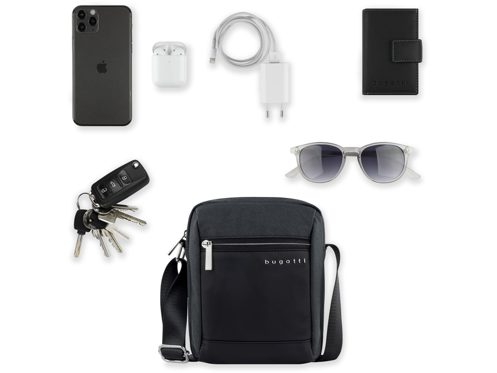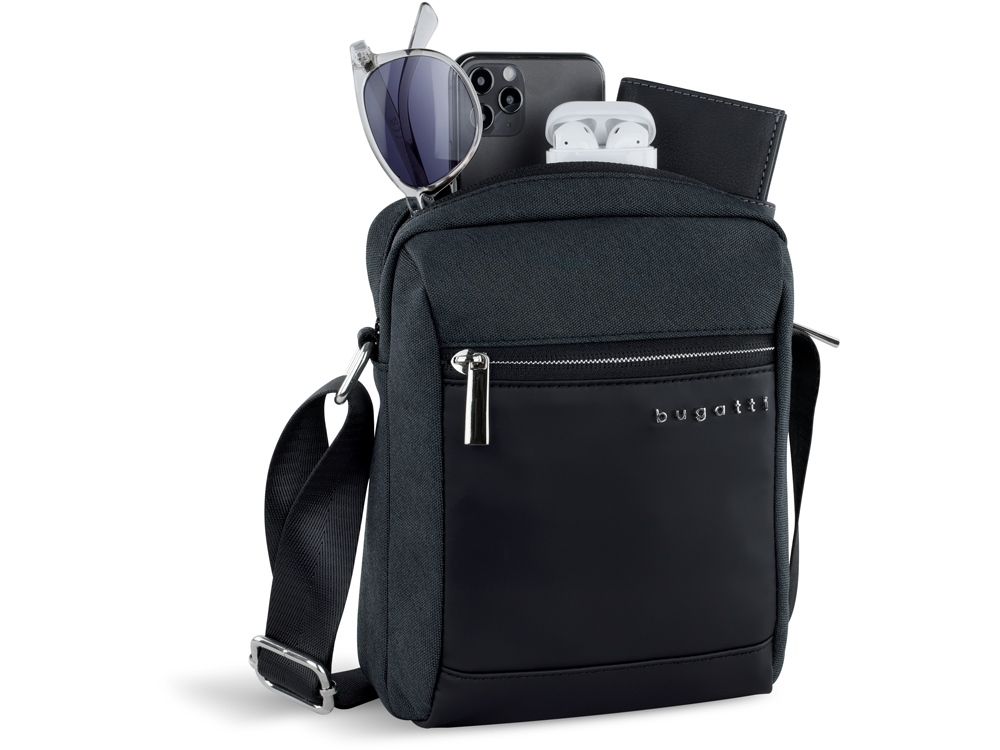 Сумка наплечная мужская BUGATTI Sera, антрацитовая, полиэстер, 17х5,5х21 см, 1,5 л купить оптом и в розницу с нанесением логотипа в Нижнем Новгороде