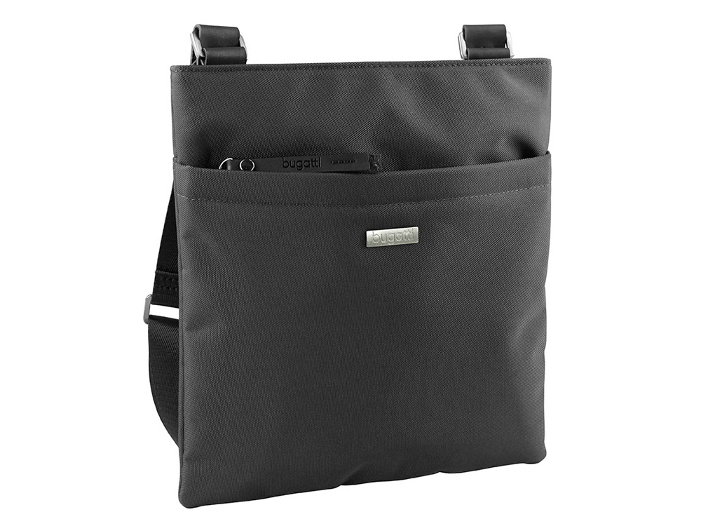 Сумка наплечная тонкая BUGATTI Contratempo, чёрная, нейлон, 23х2х25 см, 0,50 л