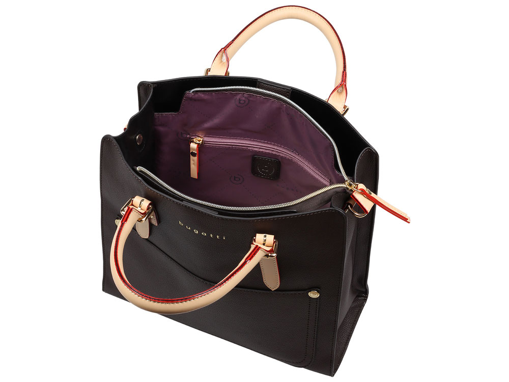 СУМКА-ПОРТФЕЛЬ ELLA Стильные сумки и кошельки из нашей коллекции ELLA украсят любой ваш образ. В изделиях этой серии элегантная эстетика гармонично сочетается с современным городским дизайном. Красивые изогнутые ручки, двухцветные плечевые ремни и изысканная фурнитура подчёркивают уникальный стиль коллекции. Модели произведены из прочного износостойкого полиуретана, что гарантирует их чрезвычайно долгий срок службы. СВОЙСТВА Внутренняя организация: основное отделение на молнии с карманом на молнии и 2 открытыми карманами, 2 боковых отделения с магнитными застёжками Внешняя организация: передний карман, ручки высотой 12 см, съёмный регулируемый плечевой ремень (до 130 см), ножки на дне Размер: 30 x 11,5 x 28 см Вес: 0,82 кг Материал: полиуретан