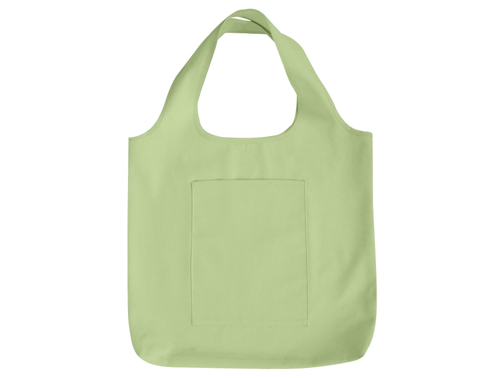 Вместительная сумка-шоппер из очень плотного переработанного хлопка с широкими лямками и большим наружным карманом 20 x 25 см спереди.